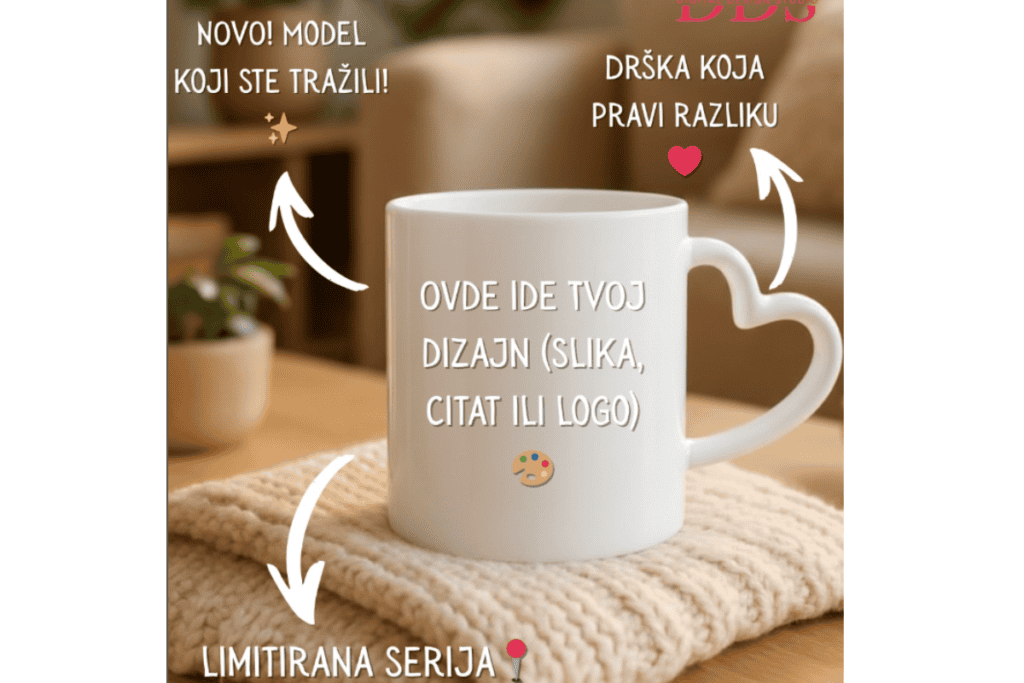 Stigle su nam šolje koje ste tražili! Drška je u obliku srca, a bela površina je tvoje novo slikarsko platno.  Pošto je ovo LIMITIRANA SERIJA (nabavili smo ih tek nekoliko!), evo par ideja za koga da ih “ugrabiš” pre nego što nestanu: