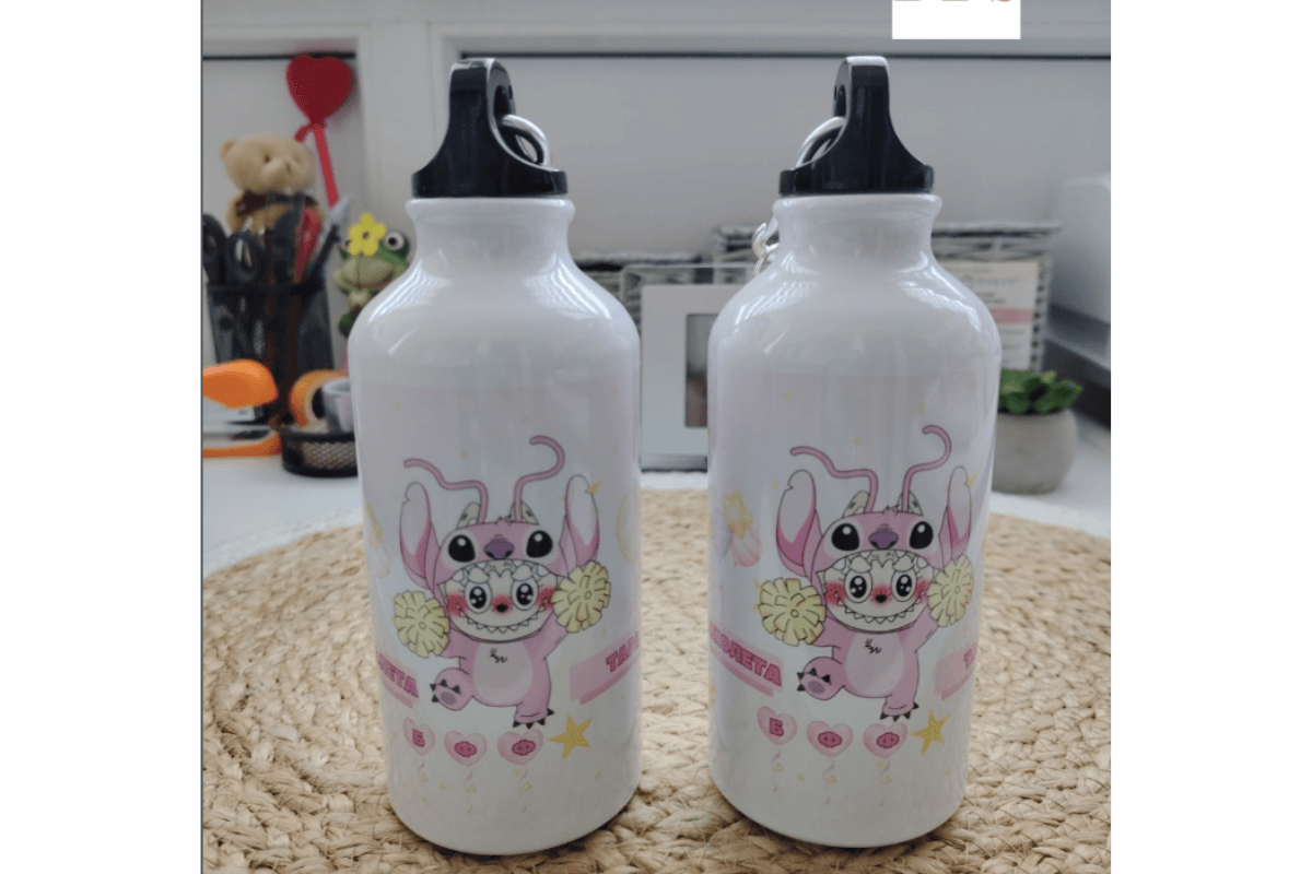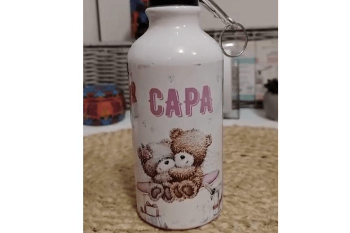 Ova aluminijumska boca od 400 ml sa nežnim motivima mede i srca napravljena je specijalno za jednu Stašu, ali svaki dizajn može biti tvoja unikatna priča.